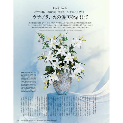 今回の掲載を通じて、エミリオ・ロバのフラワーアートがもたらす豊かな時間や空間の魅力を、より多くの方に知っていただければ幸いです。