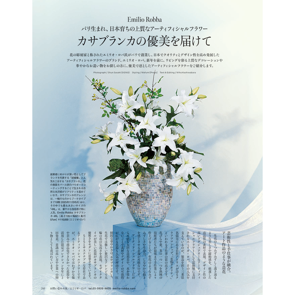 今回の掲載を通じて、エミリオ・ロバのフラワーアートがもたらす豊かな時間や空間の魅力を、より多くの方に知っていただければ幸いです。