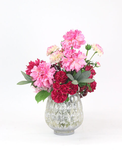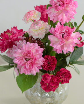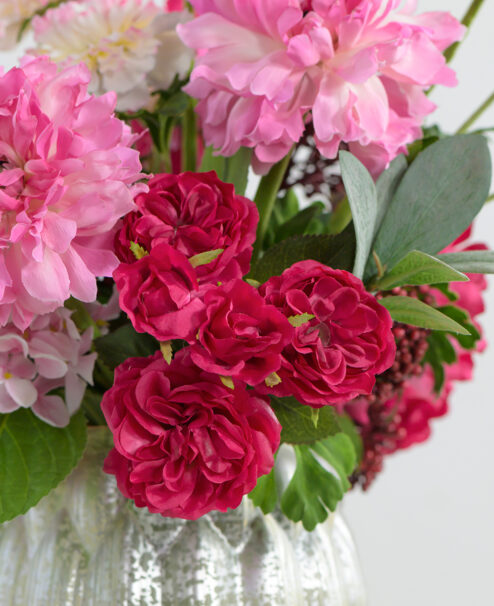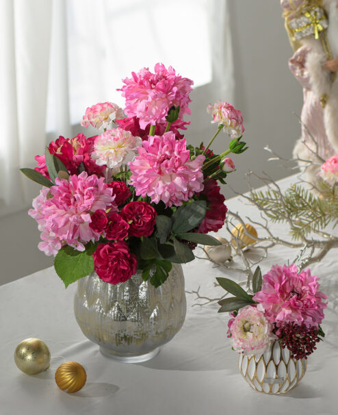 ピンクの濃淡が織りなす、優美でラグジュアリーな大人のクリスマス。 繊細な花びらの重なりが生み出す柔らかな光と影が、空間に上質な温もりを添えます。 大切な方へのギフトとしてはもちろん、リビングやエントランスを華やかに彩るクリスマスインテリアとしてもおすすめです。
