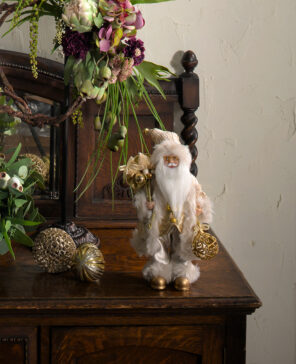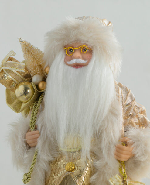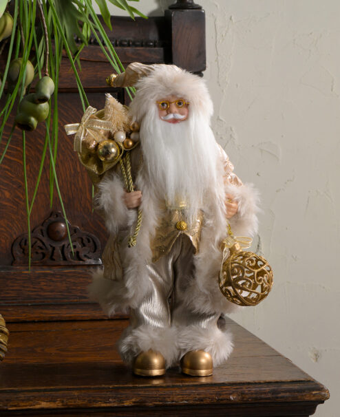 毎年大人気のサンタクロース。 クリスマスまで見守ってくれるような優しい表情、煌めく装飾やプレゼント、こだわりの衣装はジャガードが織りなす立体感や高級感を生み出し、クリスマスインテリアをより上質なものに。