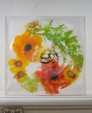 伸びやかに広がるコレオプシスと瑞々しいルスカスがアネモネを引き立て、円を描くように配された構成は、上から眺めても美しい立体感を楽しめます。テーブルやカウンターに置くだけで、空間にふわりと春の気配を運びます。