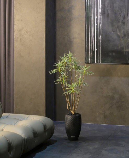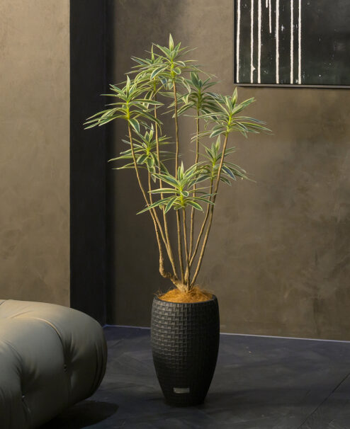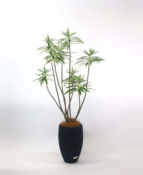すっと伸びる幹と、放射状に広がるシャープな葉姿。 ドラセナならではの縦のラインが、空間に洗練された印象をもたらします。 落ち着いたトーンの器との組み合わせが、都会的で上質な佇まいを演出。 リビングやエントランス、オフィスシーンにも映えるインテリアグリーンです。